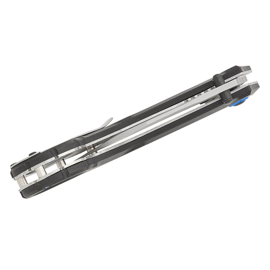 - Der G10-Griff fühlt sich solide und sicher in der Hand an. Strukturierte Details verbessern den Grip auch in nassen oder stressigen Situationen. Blaue Akzentlinien verleihen einen Hauch von modernem Stil und zeigen, dass Funktion und Design zusammenarbeiten können. Der Liner-Lock Hält die Klinge während des Gebrauchs ruhig, während die Fingerring sorgt für Stabilität und schnelle Handhabung.