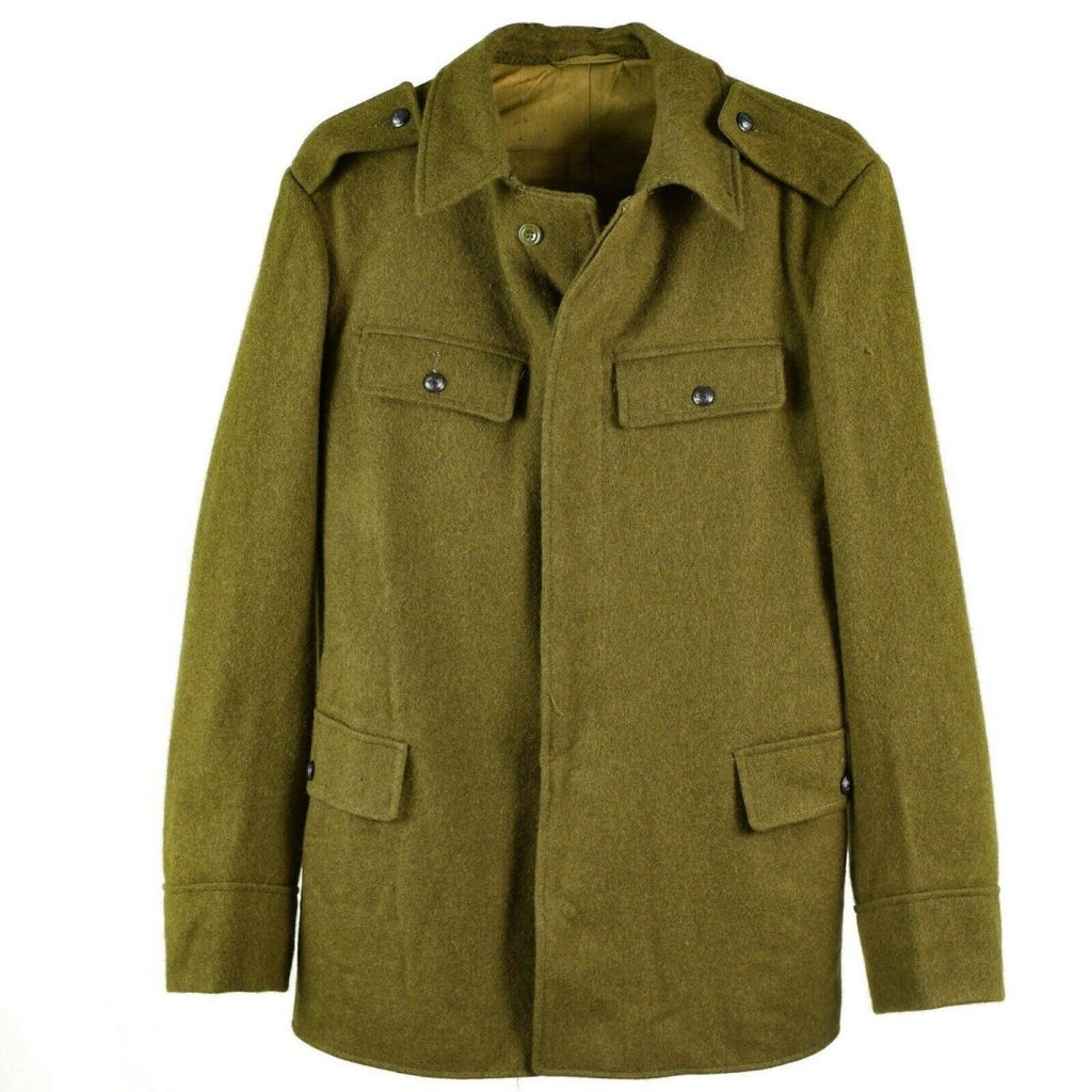 - Diese Militärjacke aus Wolle verfügt über praktische Eigenschaften, die ihren Wert steigern. Ausgestattet mit Brust- und Innentaschen bietet es Ihnen viel Platz für Ihre wichtigsten Utensilien. Egal, ob Sie im Freien wandern oder Besorgungen machen, Sie können Ihre Schlüssel, Ihr Portemonnaie oder Ihr Telefon problemlos verstauen. Der Wollstoff der Jacke dient als natürlicher Isolierer und ist somit eine zuverlässige Wahl bei kälteren Temperaturen.