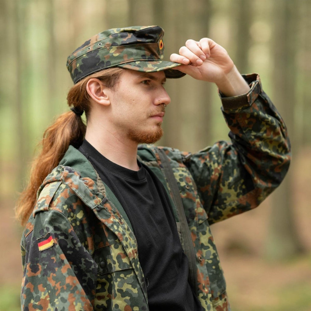 Mit dieser originalen Flecktarn-Kappe der deutschen Armee sehen Sie schick aus und fühlen sich selbstbewusst. Diese atmungsaktive, faltbare Militärmütze ist perfekt für Outdoor-Abenteuer oder einfach als tolles Modeaccessoire. Zeigen Sie Ihren taktischen Stil mit dieser originalen Militärmütze in ihrer zeitlosen BW-Waldtarnfarbe. Außerdem können Sie sich mit dem klassischen Flecktarn-Tarndesign in Ihre Umgebung einfügen und trotzdem einzigartig aussehen. Verbessern Sie jetzt Ihren Stil mit dieser einzigartigen Militärmütze.