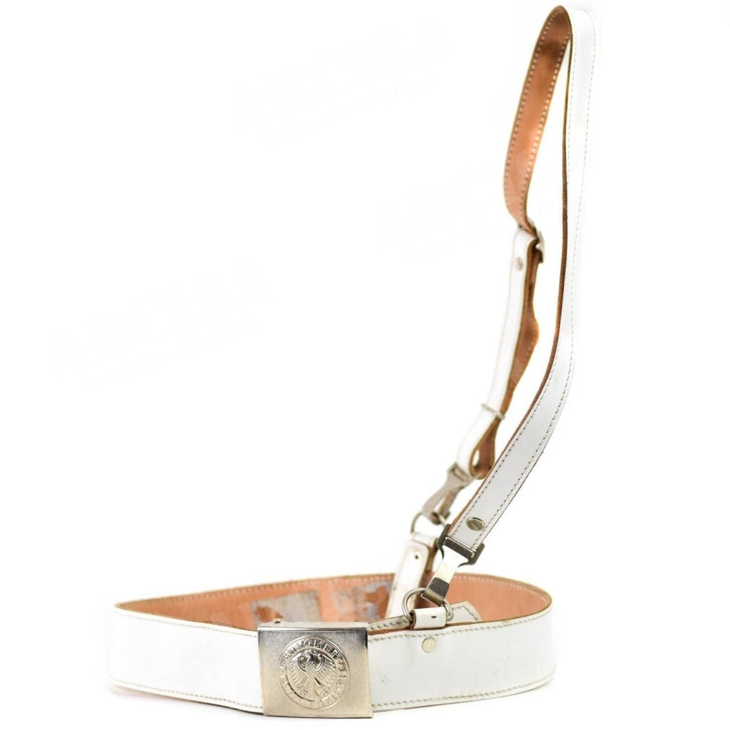 Echter deutscher Feldjäger-Ledergürtel in Weiß mit Schulterriemen