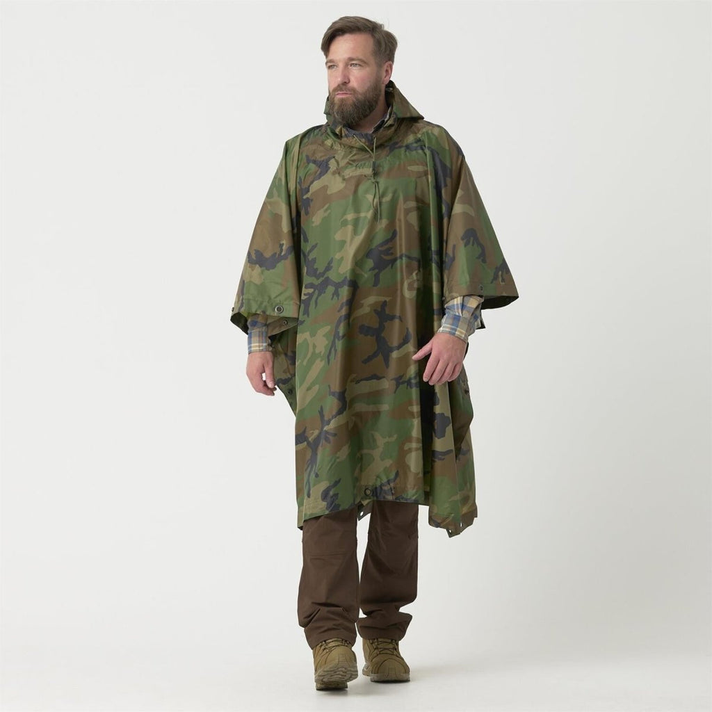 Helikon-Tex US Army Model Poncho, wasserdicht, taktische Regenbekleidung, Woodland Camo