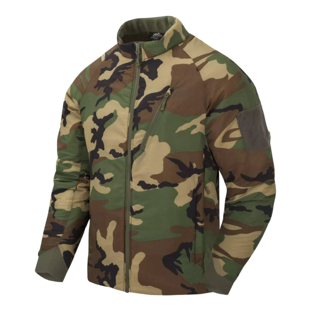 Die Helikon-Tex Wolfhound Jacket Climashield Insulation Windpack Woodland Camo ist eine leichte isolierte Jacke, die für Outdoor-Aktivitäten, taktische Anwendungen und den Alltag bei kühlerem Wetter entwickelt wurde. Es ist auf ein optimales Wärme-Gewichts-Verhältnis ausgelegt und liefert zuverlässige Wärmeleistung, ohne die Mobilität einzuschränken.