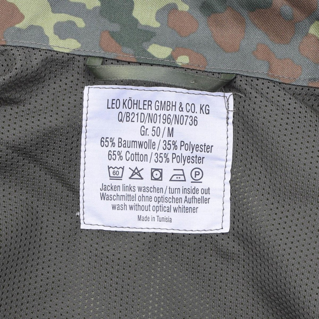 Wir stellen die Leo Kohler Military Combat Tactical Jacket in Flecktarn-Camouflage vor, ein Premium-Kleidungsstück, das Stil mit Funktionalität verbindet. Diese aus einer strapazierfähigen Baumwollmischung gefertigte Bundeswehrjacke garantiert Komfort und Langlebigkeit.