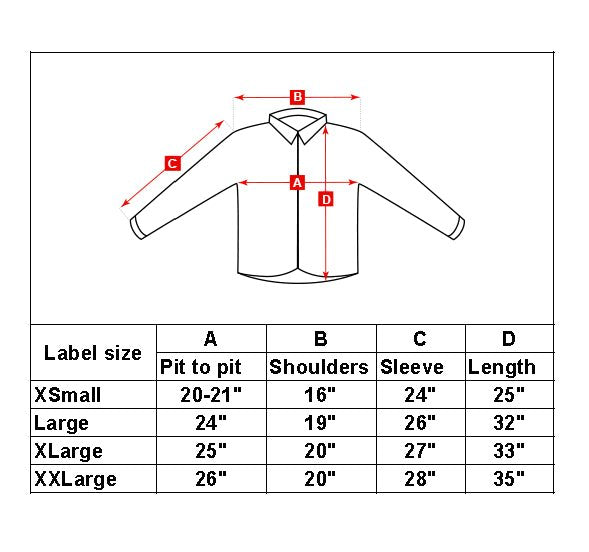 | Xxlarge | 26" | 20" | 28" | 35" |