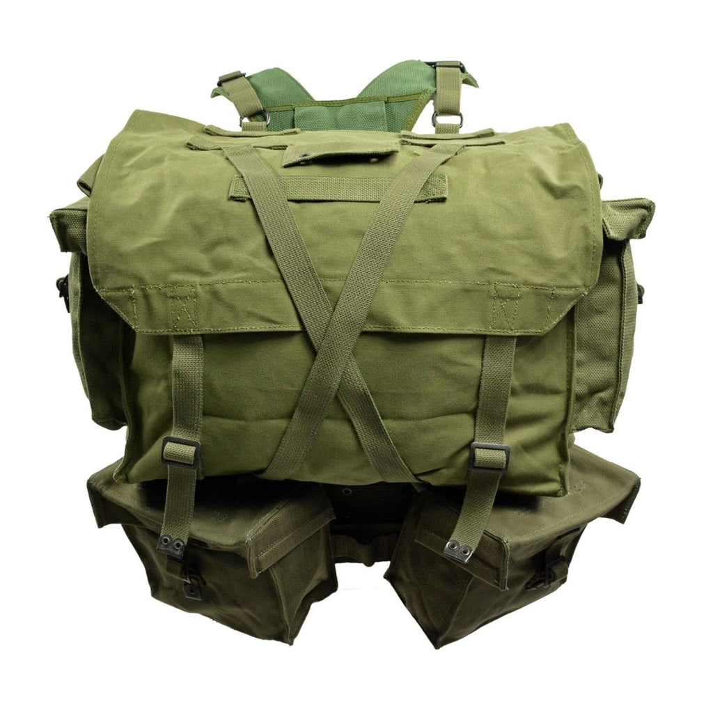 Die aus 100 % starkem Baumwollgewebe gefertigte Ausrüstung ist auf Zuverlässigkeit und lange Lebensdauer ausgelegt. Die olivfarbene Farbe ist typisch für militärische Feldausrüstung und aufgrund der überschüssigen Herkunft können verschiedene Teile im Set leicht unterschiedliche Olivtöne aufweisen.