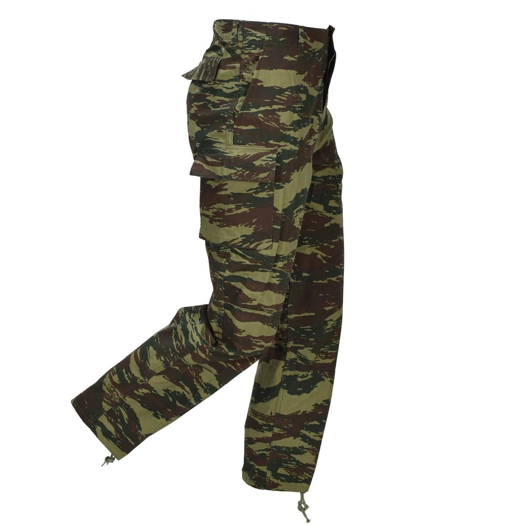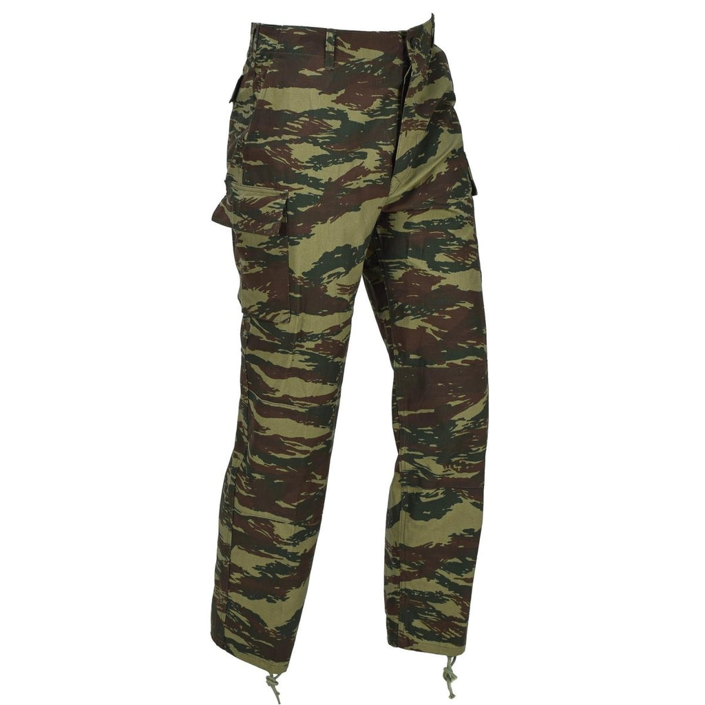 Die Hose ist aus robustem Stoff gefertigt und mit mehreren Cargotaschen ausgestattet, die eine praktische Aufbewahrung für wichtige Gegenstände bieten. Die charakteristische Tarnung „Griechische Eidechse“ bietet wirksame Tarnung in Wäldern und gemischtem Gelände.