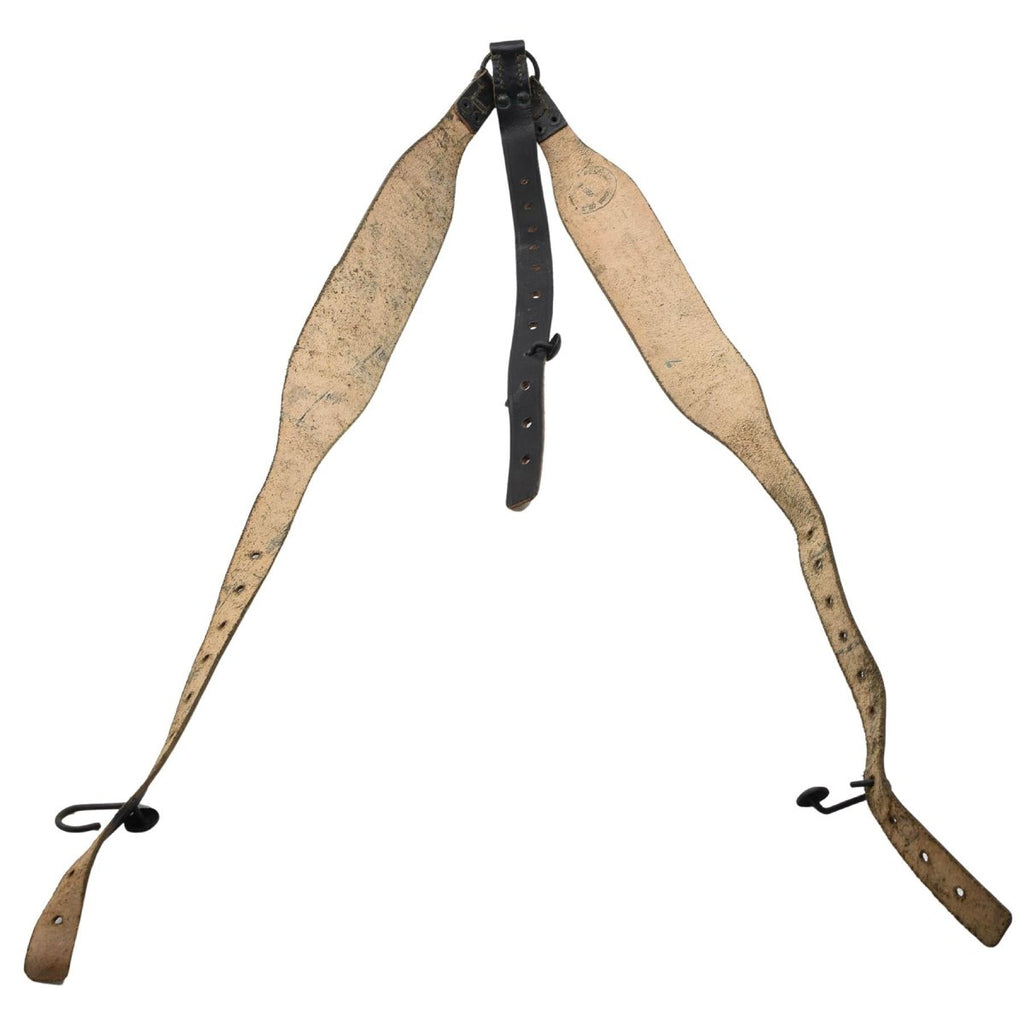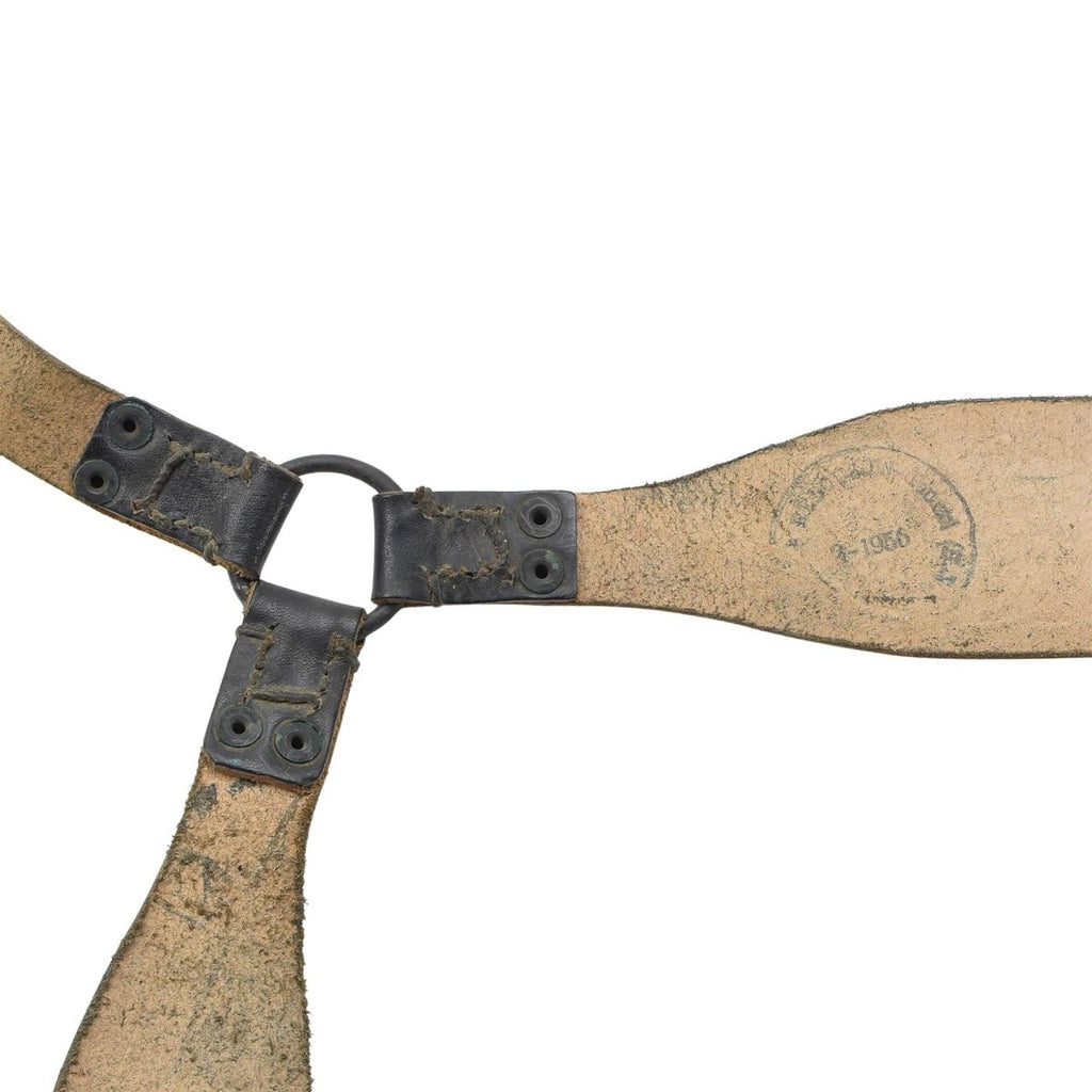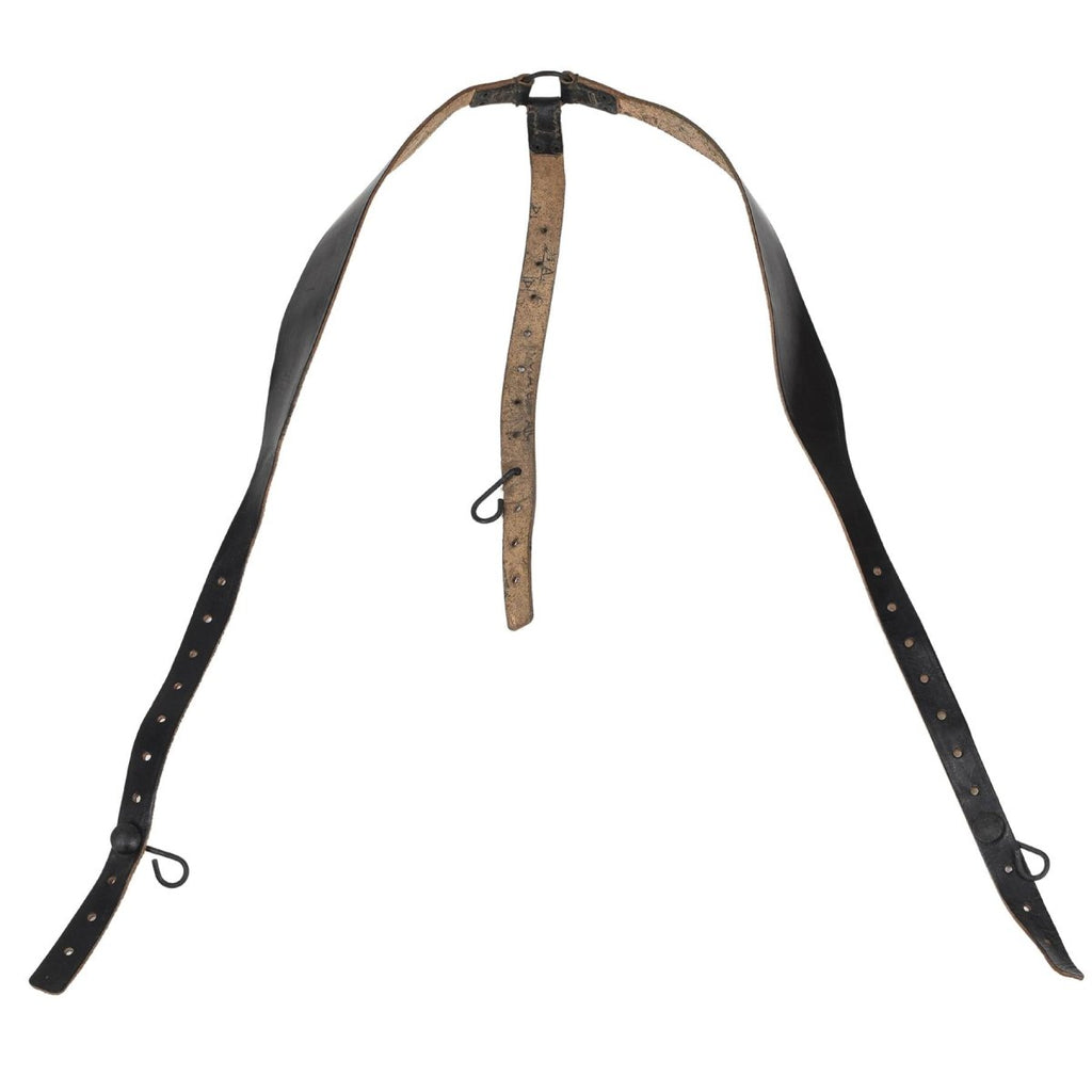 Original österreichische Militär Leder Hosenträger Y-Riemen verstellbar schwarz vintage