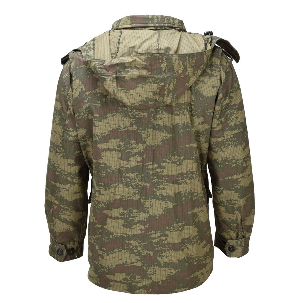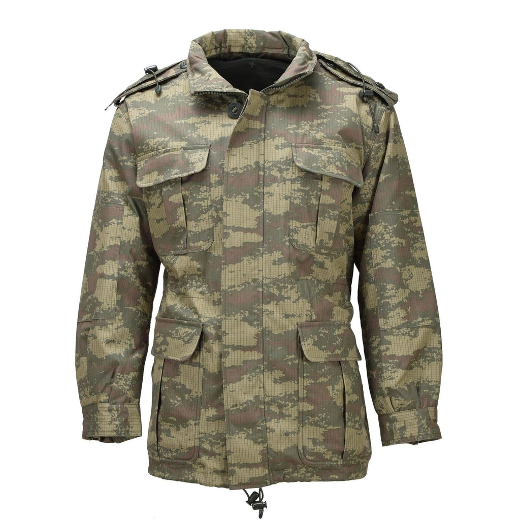 Mit einem Fleecefutter ausgestattet, bietet diese Jacke zusätzliche Wärme und Komfort und eignet sich daher für kühlere Wetterbedingungen. Das Tarnmuster M2008 bietet wirksame Tarnung in gemischten Geländeumgebungen und spiegelt das Standarddesign der türkischen Streitkräfte wider.