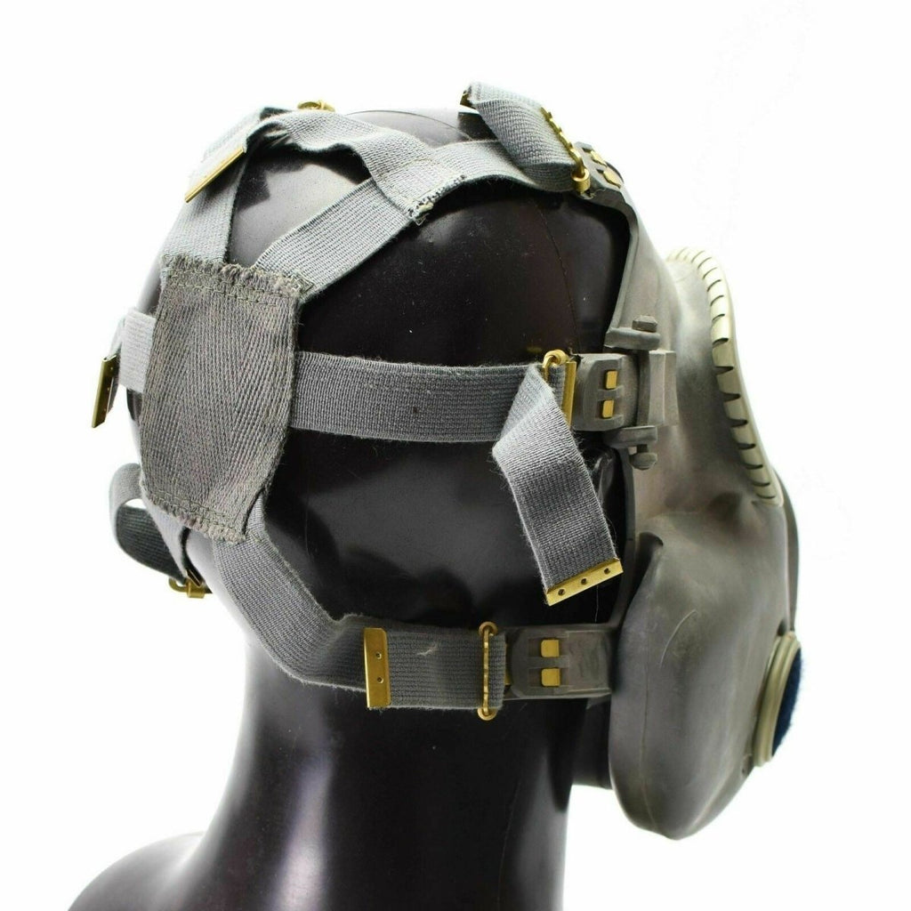 Die MP4-Vintage-Gasmaske besteht aus einer Gummi-Gesichtsmaske und einem Satz austauschbarer Filter, die an der Maske befestigt werden können. Die Filter dienen dazu, bestimmte Arten von Schadstoffen aus der Luft zu entfernen, beispielsweise Partikel, Gase oder Dämpfe.