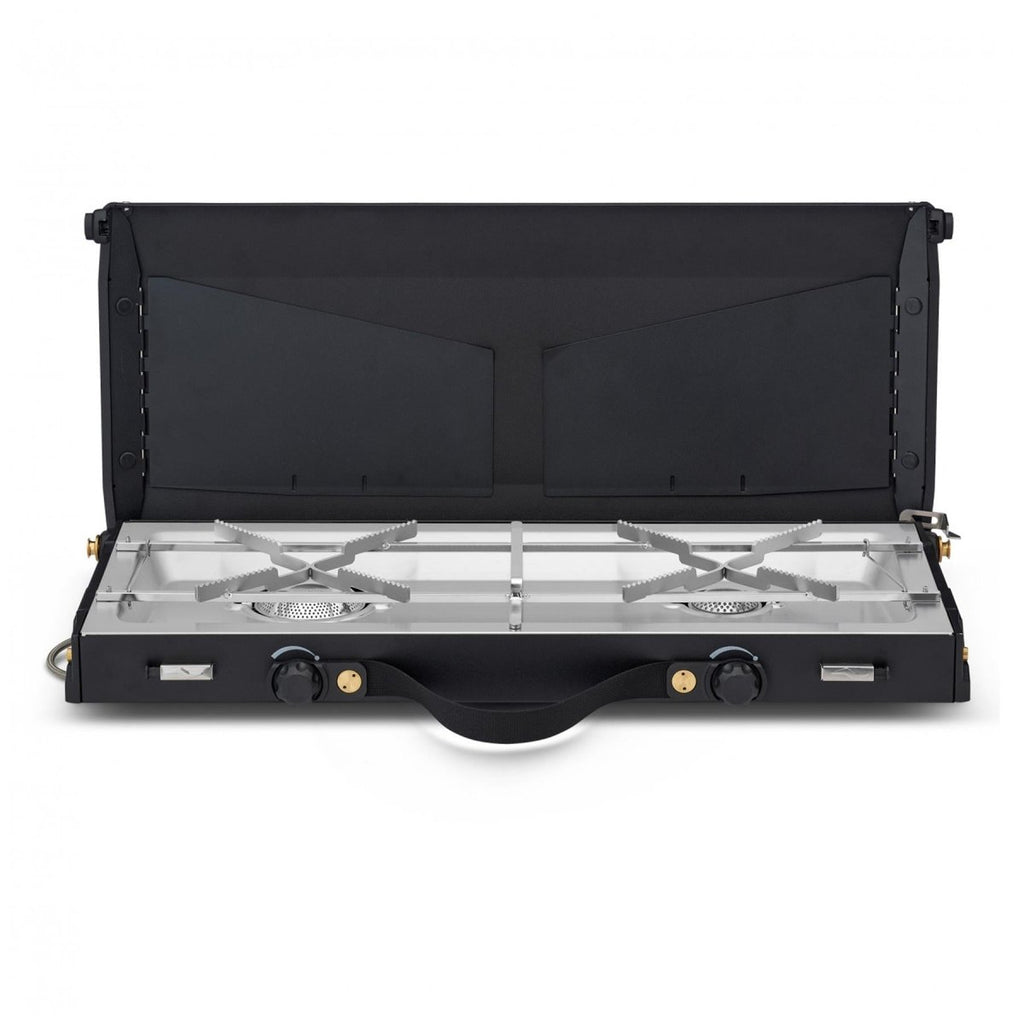 Für noch mehr Flexibilität verfügt der Herd über einen abnehmbaren Deckel. Sie können den Deckel einfach abnehmen, um zusätzlichen Garraum zu schaffen, sodass Sie größere Töpfe und Pfannen verwenden können. Der Primus Alika-Gaskocher mit zwei Brennern liefert leistungsstarke, zuverlässige Leistung und ist somit ein Muss für Ihr nächstes Outdoor-Abenteuer.