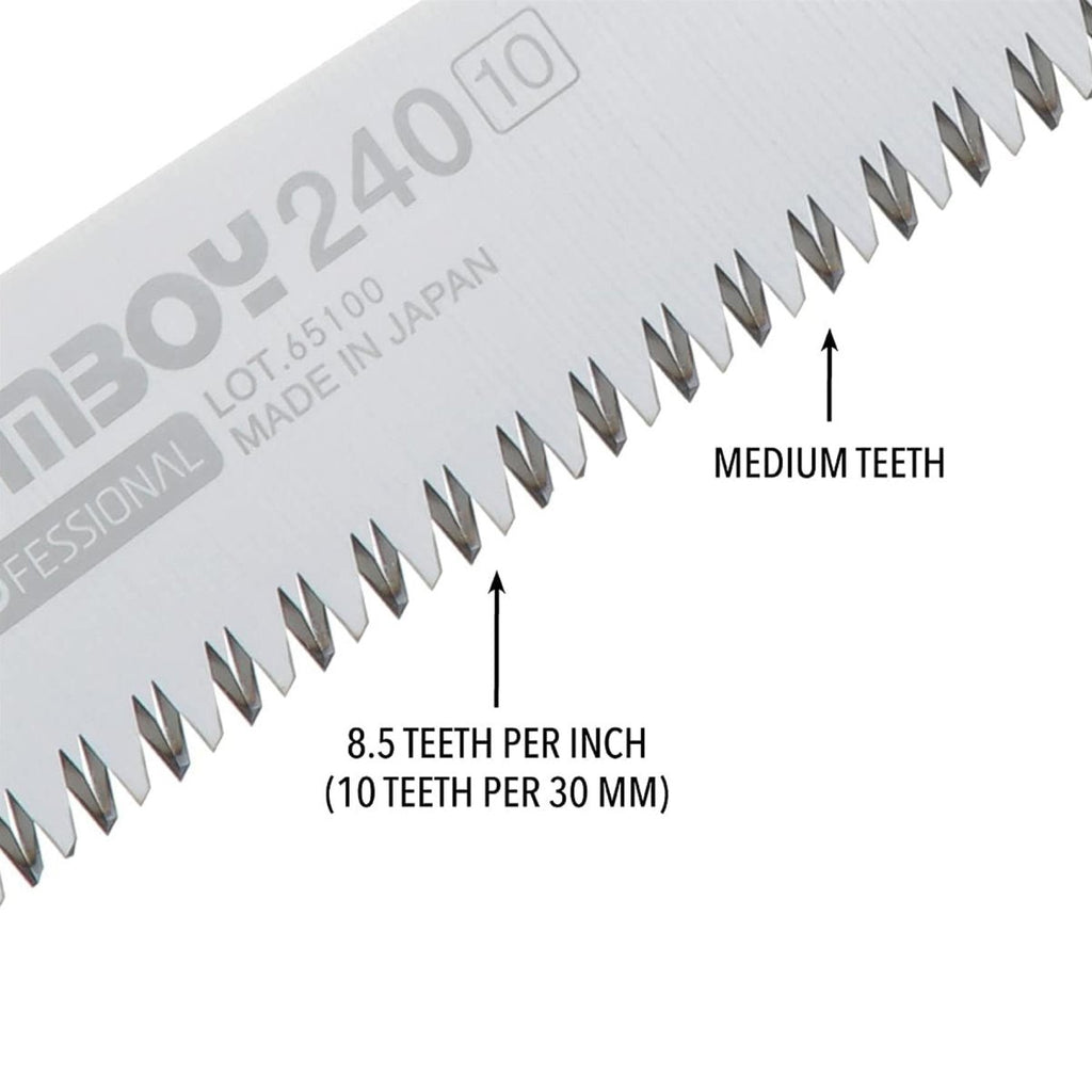 • Das 240 mm lange Edelstahlmesser verfügt über 10 Zähne pro 30 mm und sorgt so für stets saubere Schnitte. Diese Säge bietet eine überragende Leistung und ist daher ein unverzichtbares Werkzeug für jeden Outdoor-Enthusiasten.