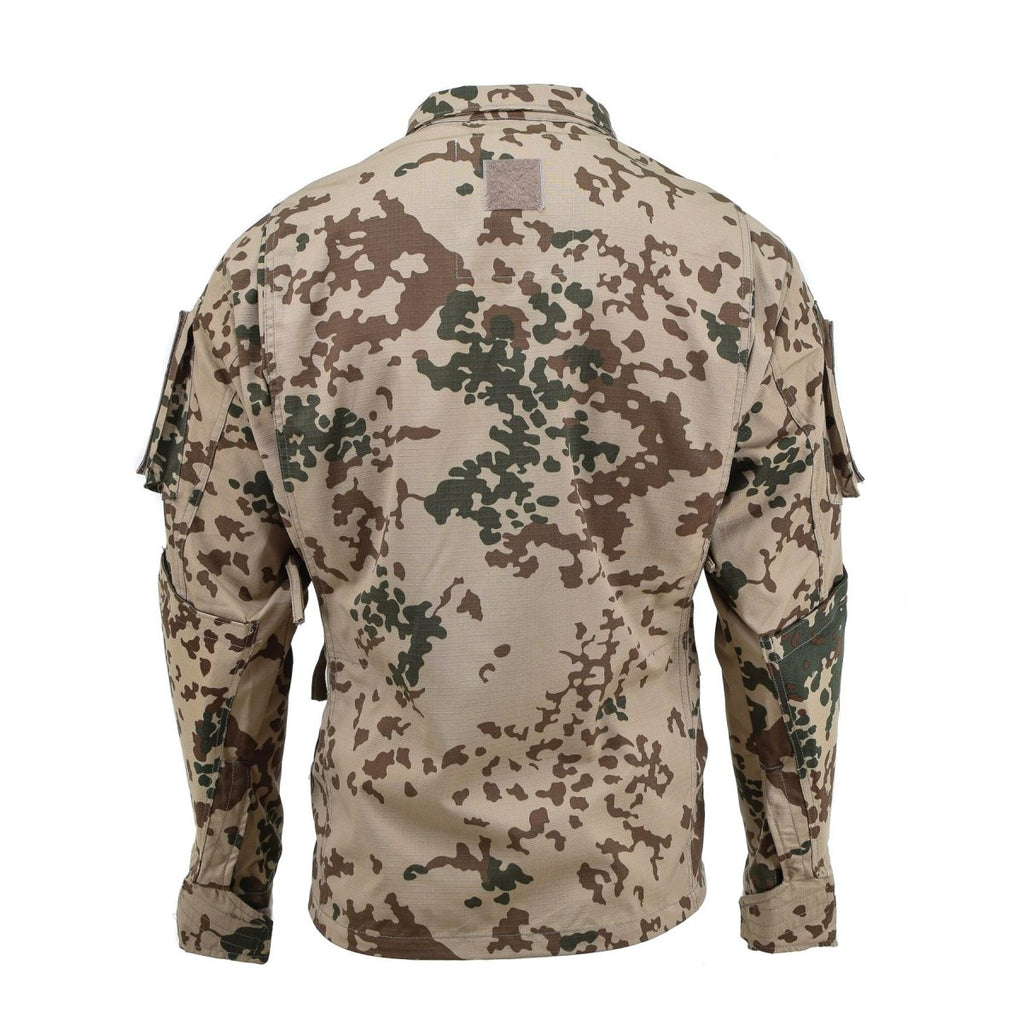 • Das aus strapazierfähigem Ripstop-Gewebe gefertigte Desert Flecktarn Combat Shirt ist reiß- und abriebfest. Dies macht es zu einer zuverlässigen Wahl für raue Umgebungen, in denen andere Materialien möglicherweise versagen. Das Design des Shirts umfasst verstärkte Ellbogen, die für zusätzliche Haltbarkeit in stark beanspruchten Bereichen sorgen. Außerdem verfügt es über eine geknöpfte Vorderseite und mehrere Taschen, die Ihnen viel Platz zum Verstauen wichtiger Dinge wie Karten, Werkzeuge oder Kommunikationsgeräte bieten.