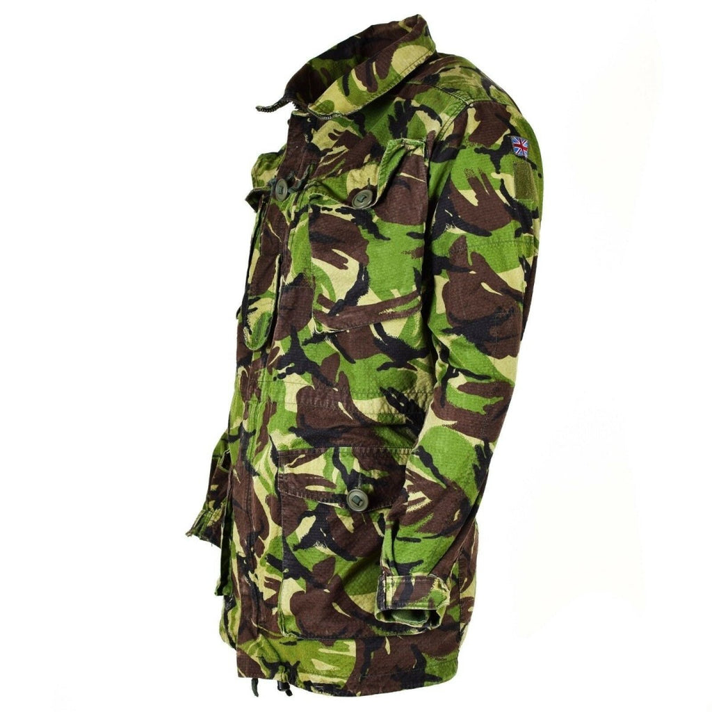 - Darüber hinaus zeichnet sich die britische Smockjacke durch ihr markantes DPM-Tarnmuster (Disruptive Pattern Material) aus. Das DPM-Muster integriert Braun-, Grün- und Schwarztöne, angeordnet in einem fleckigen, unregelmäßigen Design. Diese Tarnung fügt sich effektiv in das natürliche Gelände ein, verringert die Sichtbarkeit und verbessert die Tarnung.