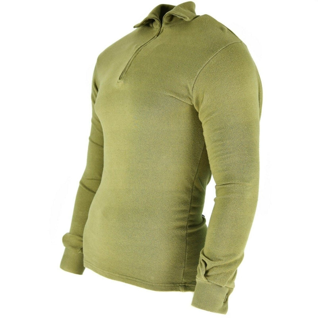 Original Britische Armee Trikothemd Reißverschluss Unterhemd Thermo Reißverschluss Grün OD